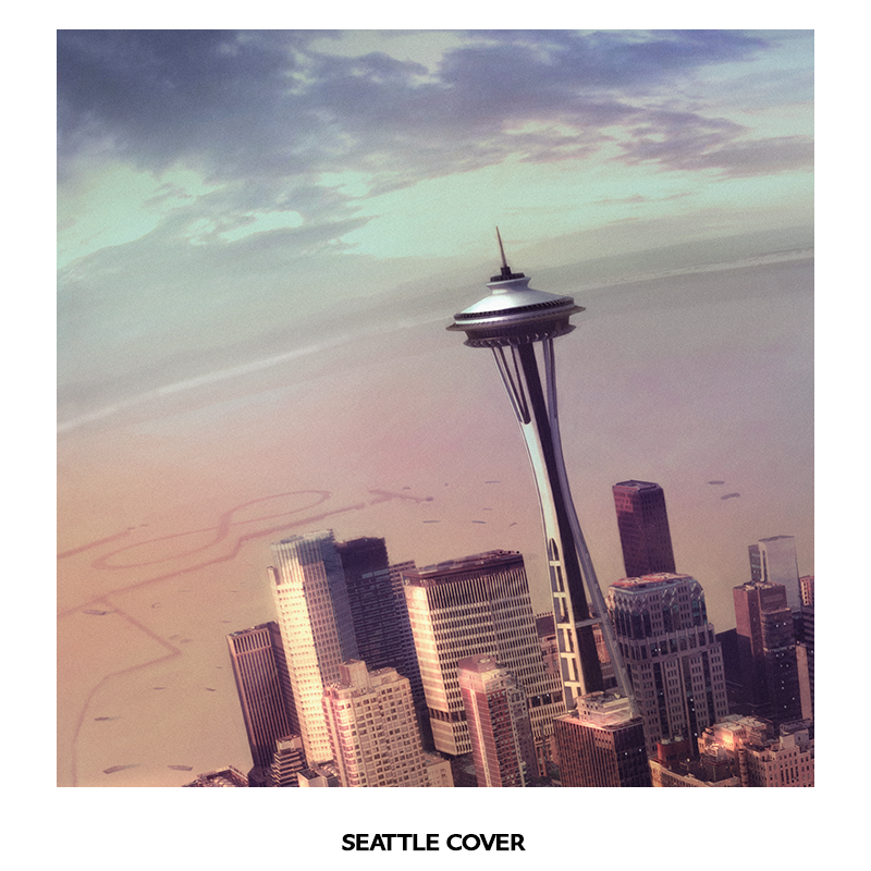 Earlier today, Foo Fighters announced that Sonic Highways would be title of their upcoming eighth studio album and that it would be released on November 10. Now, the Foos have revealed another audio teaser from the record and announced more details about the album’s physical release. In addition to CD and MP3, the album will be released on special edition 180g vinyl in an assortment of nine different gatefold covers including eight different themes; one for each of the cities in which the album was recorded: Austin, Chicago, Los Angeles, Nashville, New Orleans, New York, Seattle, and Washington, D.C. All the covers can be viewed in the gallery below. The vinyls will be made available in a variety of bundles, including a grand package of a ‘Sonic Highways vinyl, CD, flag, t-shirt, and puzzle all in a beautiful wooden box. – by Matt Bishop